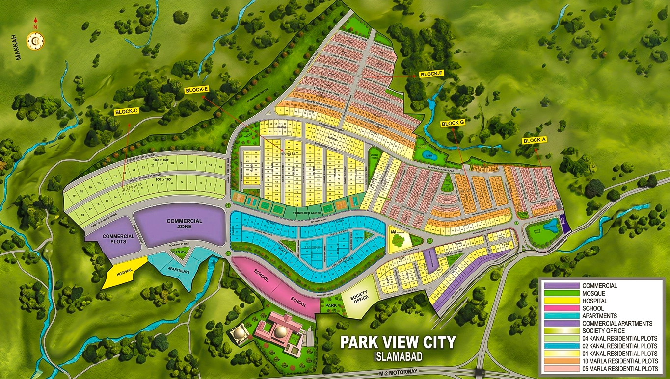The master plan of Parkview Islamabad is thoroughly designed by professional and expert teams. Moreover, it offers several blocks, each containing various sizes of residential and commercial apartments, penthouses, offices, and shops.