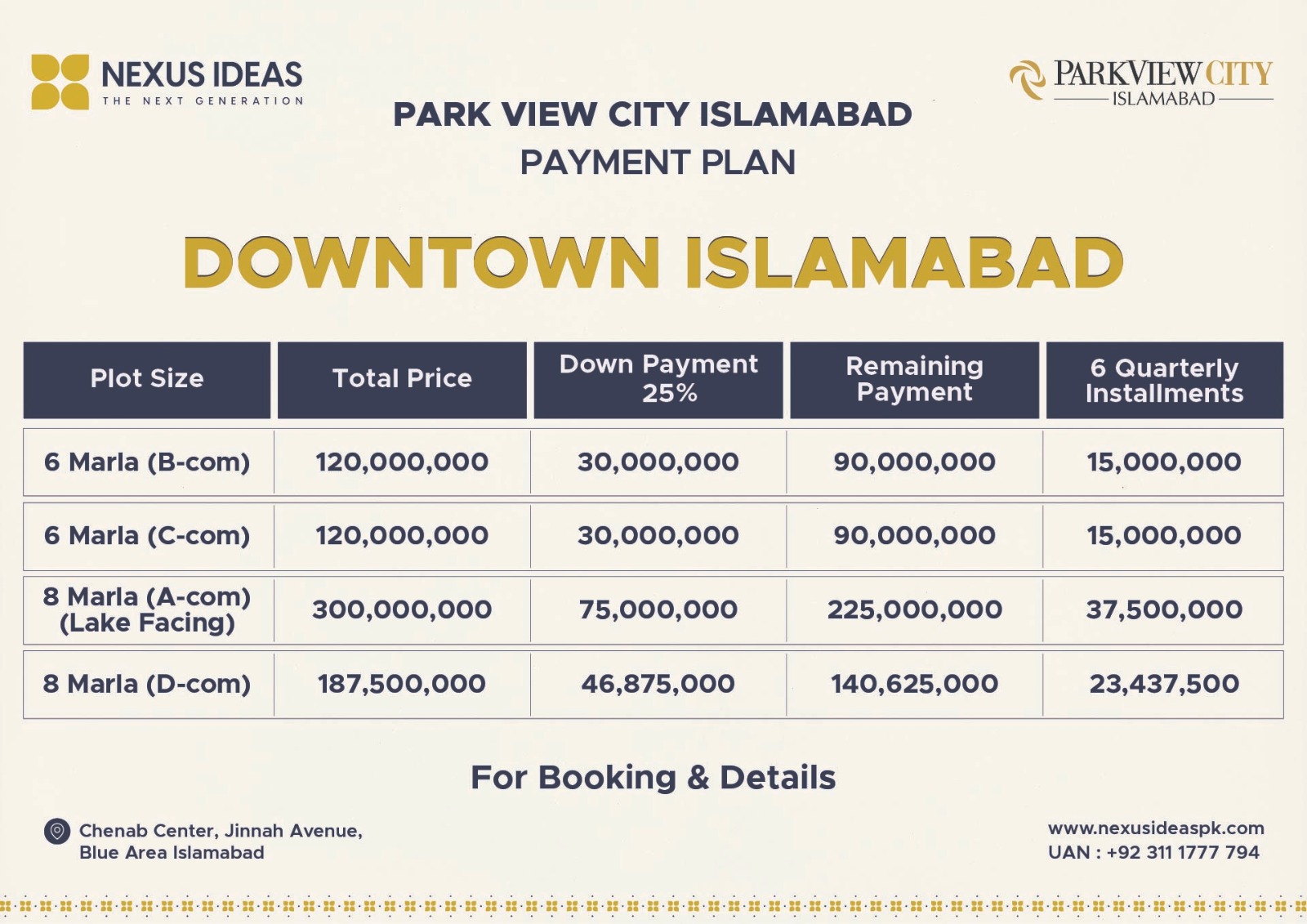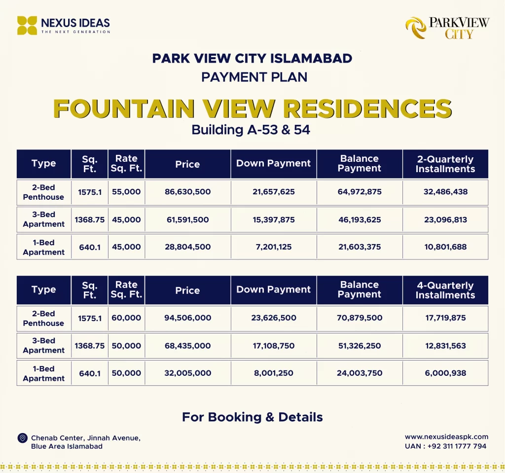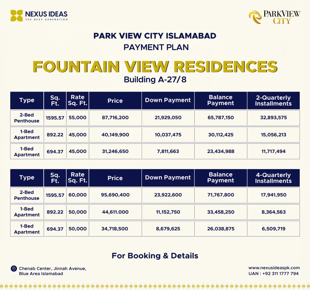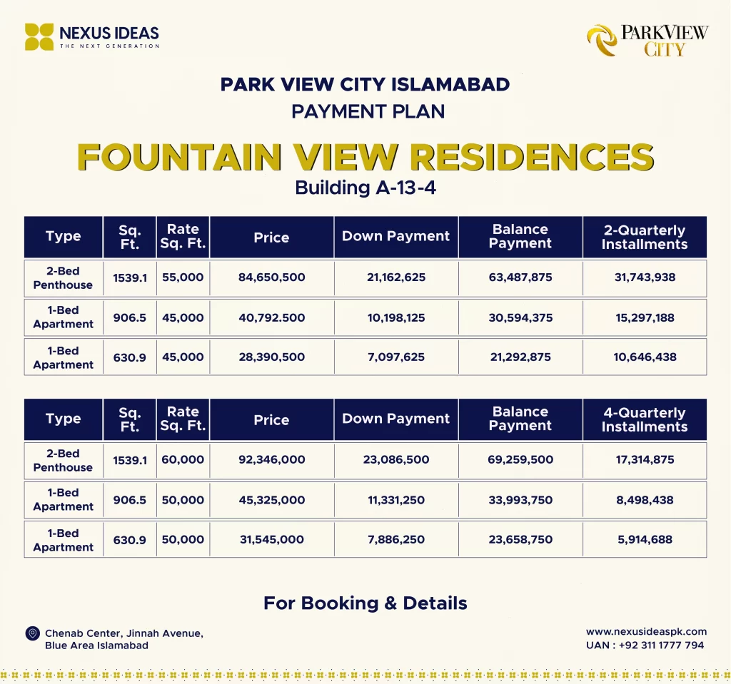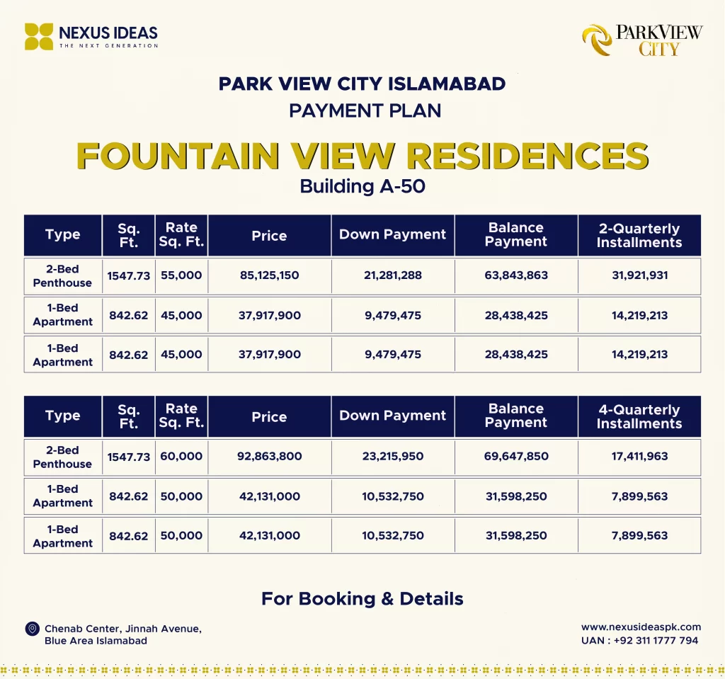 The Park View City Islamabad payment plan seems quite reasonable, with an easy installment schedule. Moreover, the prices of all residential & commercial plots, apartments, penthouses, offices, and shops are extremely affordable and match your range.